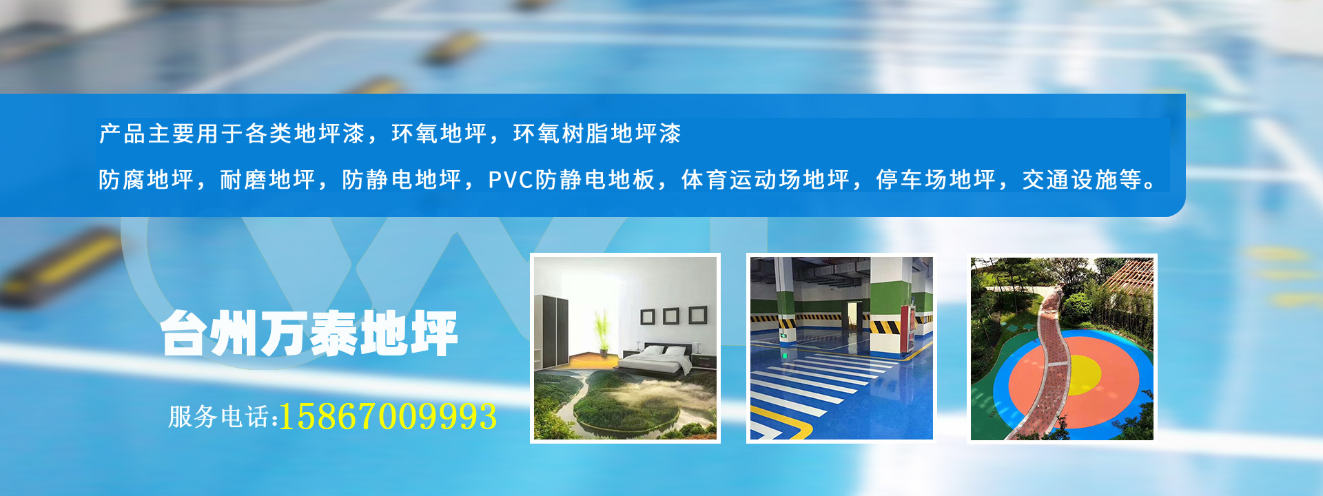 我们主要的服务项目有:环氧树脂地坪漆、环氧树脂地板、环氧树脂防腐耐磨地坪、停车场地坪、pvc卷材室内球场、硅PU球场跑道、丙烯酸球场跑道、球场地板、净化工程及各类防腐、耐磨工业地坪工程。我公司所生产的工业地坪具有:光洁平滑、无缝美观、防尘、防潮、防腐蚀、防静电、防滑、耐磨、耐压、耐冲击、附着力强等优良性能,广泛用于电子、学校、印刷、化工、仓库、医院、精密喷油车间、地下停车场、加工及轻工业领域,为贵公司提供一个洁净而亮丽的生产及办公环境。